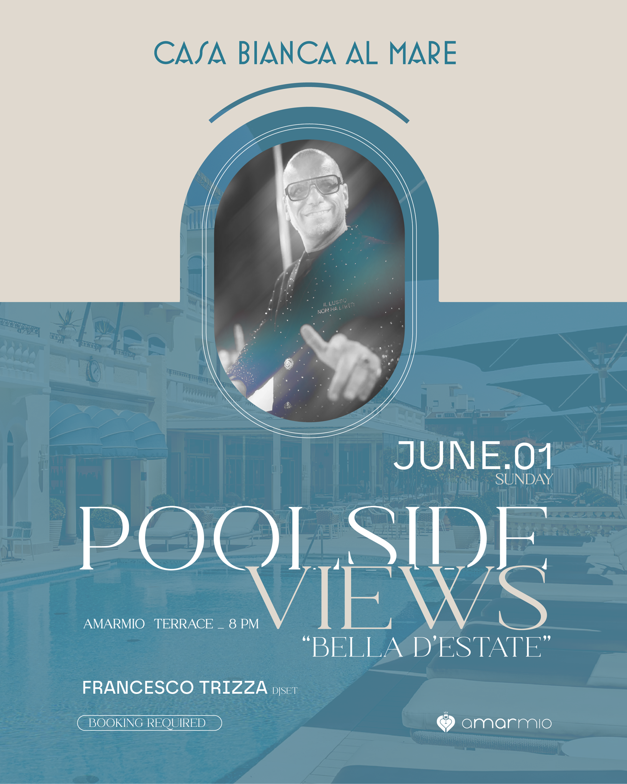 The Bella D’estate event returns to the Amarmio terrace of the Casa Bianca boutique hotel: an evening by the pool, with Mediterranean flavours, music and a view of the sea.